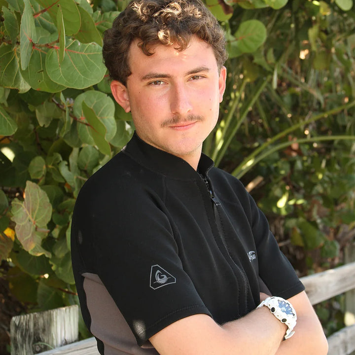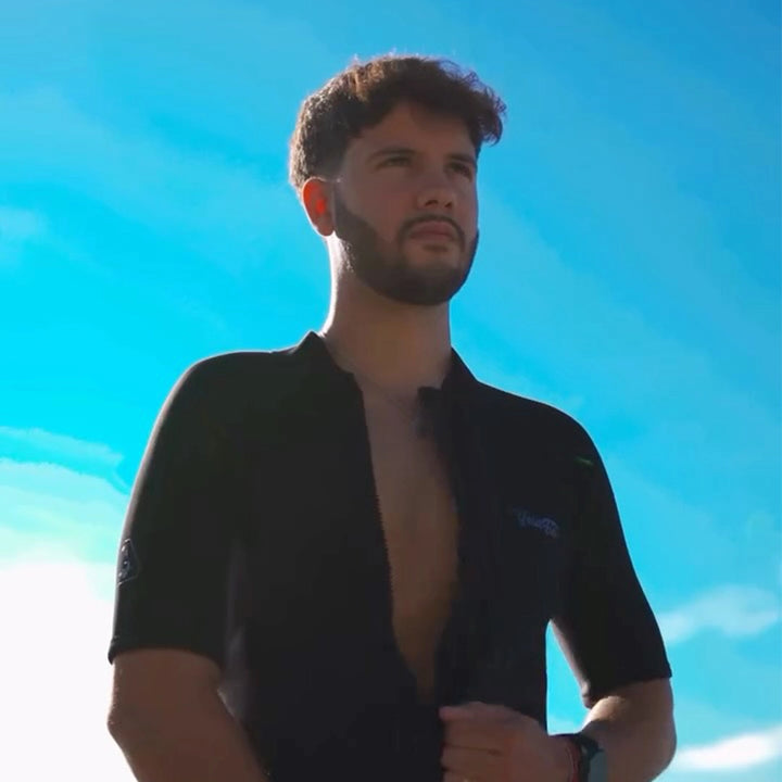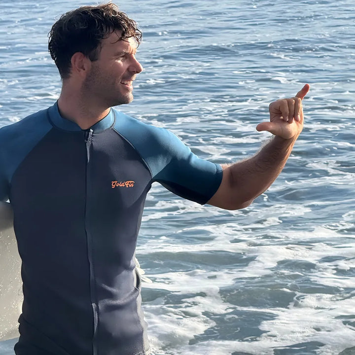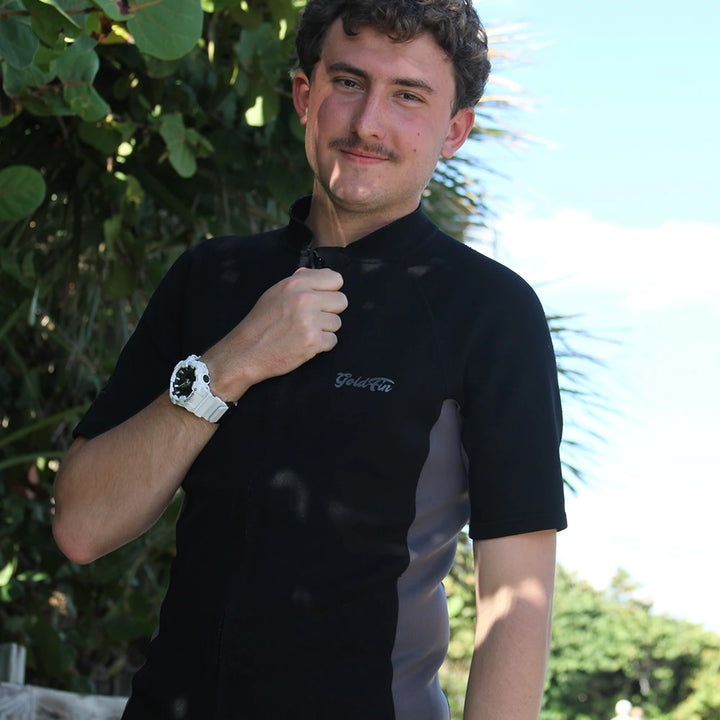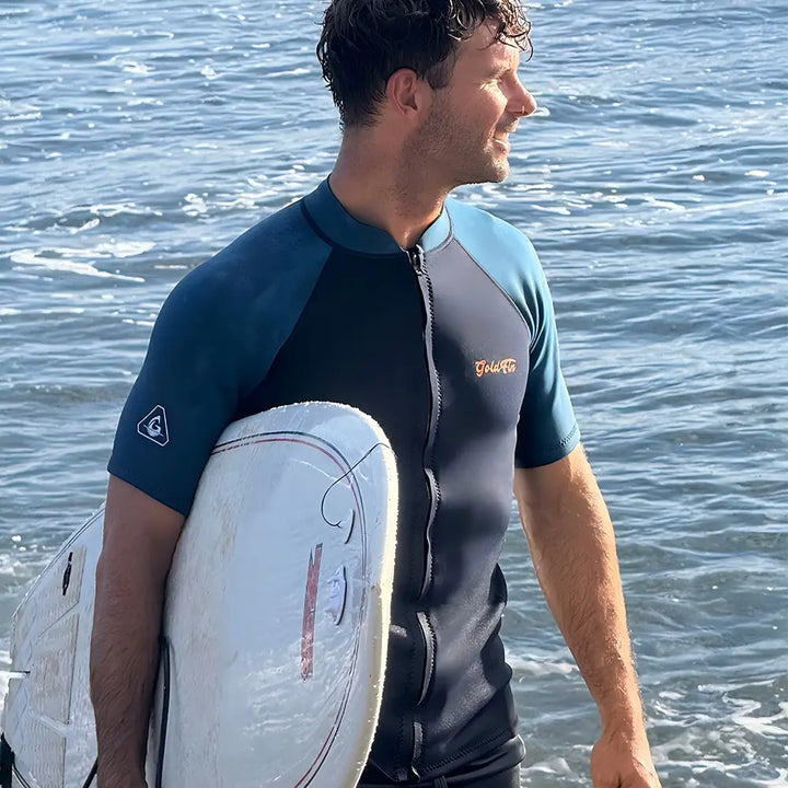 Glide through the waves with confidence in this men's short sleeve wetsuit top. Engineered from premium neoprene, it delivers lightweight warmth, flexible movement, and lasting comfort for surfing, snorkeling, or swimming adventures.