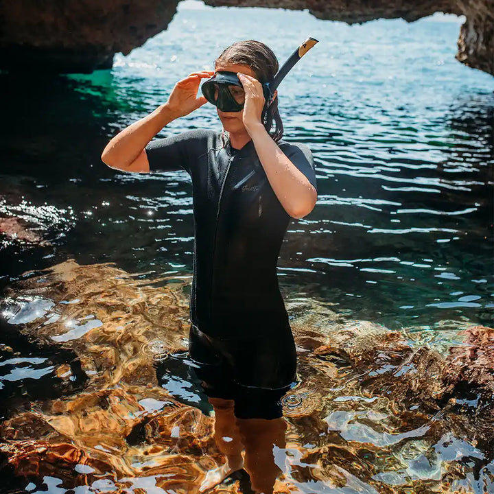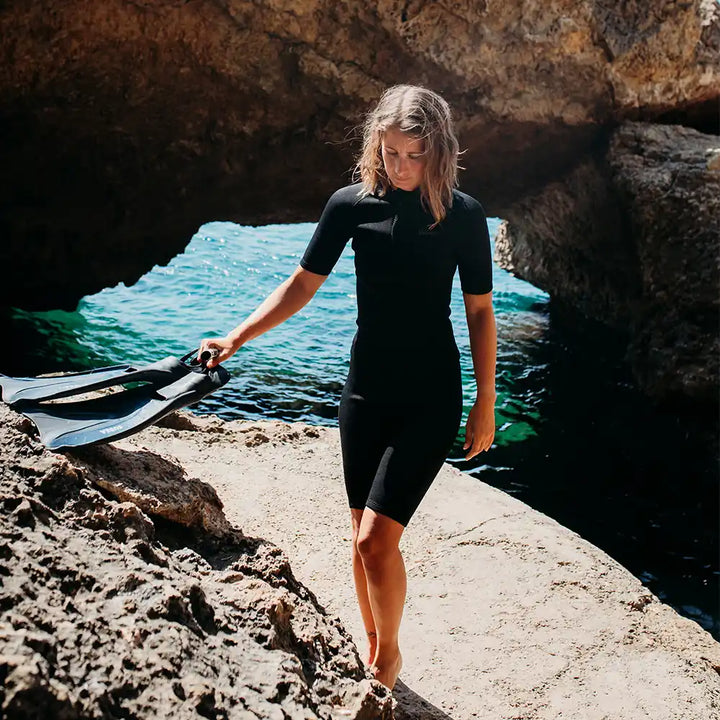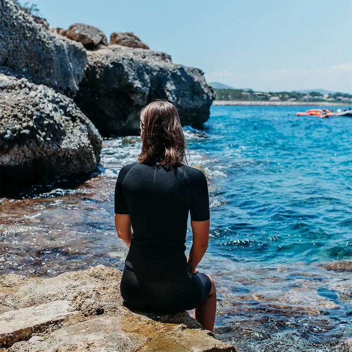 Dive into your favorite water sports with this women's short sleeve wetsuit top. Crafted from premium neoprene, it delivers a snug yet flexible fit that allows full range of motion while keeping you comfortable during surfing, snorkeling, or swimming.